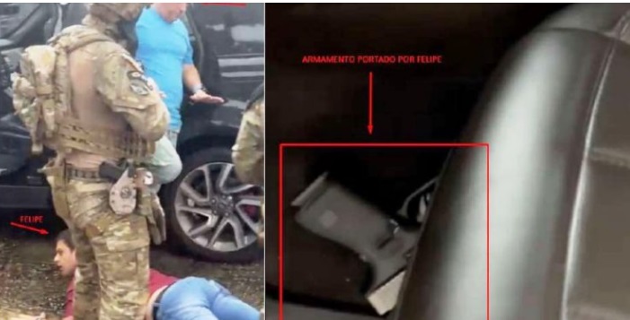 A abordagem policial, no entanto, não foi pacífica. Ao notar a presença dos agentes, o empresário Felipe Linhares Paes tentou fugir e reagiu apontando uma pistola contra a equipe da PF. Para conter a agressividade do suspeito e garantir a segurança de testemunhas no local, os policiais precisaram efetuar disparos de advertência.
