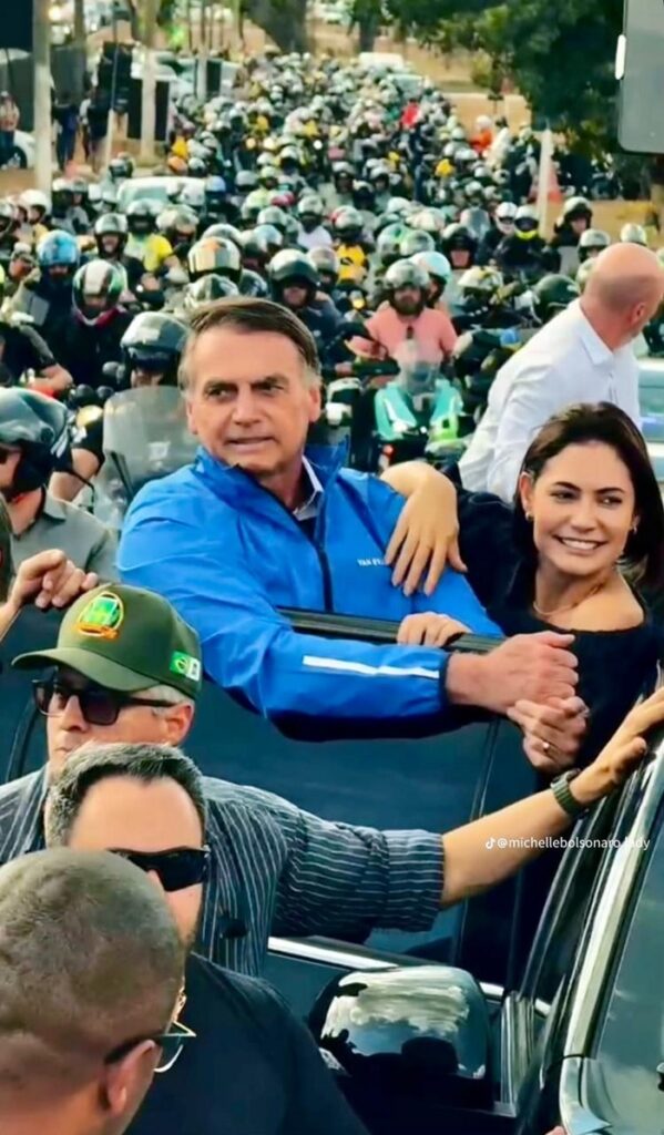 O ex-presidente Jair Bolsonaro participou, nesta terça-feira (29), de uma motociata em Brasília organizada por parlamentares aliados. A bordo de um carro, ladeado por seguranças e impedido de pilotar por ordem judicial, percorreu pouco mais de 10 quilômetros ao lado da ex-primeira-dama Michelle Bolsonaro e do senador Flávio Bolsonaro (PL-RJ).