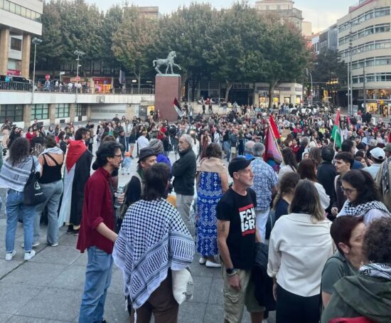 O movimento sindical italiano anunciou uma greve geral no país para esta sexta-feira, 3 de outubro, em solidariedade aos membros da Flotilha da Liberdade. Em Portugal, milhares de pessoas saíram às ruas nesta quinta (2) – foto acima- em Lisboa e outras cidades para exigir a libertação dos presos por Israel. (Foto: Reprodução)