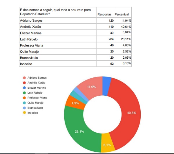 Pesquisa auscultou também a população sobre a tendência de votos para deputado estadual. Abaixo, quadro dos nomes mais indicados para a Assembleia Legislativa do Pará.