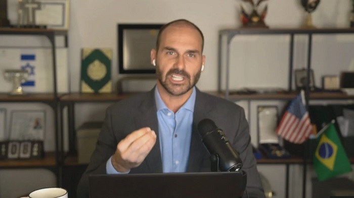 No domingo passado (24), durante uma entrevista a um canal conservador dos EUA, Eduardo elogiou o presidente Donald Trump, chamando-o de “o maior líder da história”. Ele também expressou sua gratidão pelo aumento de tarifas sobre as exportações brasileiras: “É importante reconhecer o presidente Trump, que na minha visão é o maior líder que já existiu. Ele iniciou uma pressão sobre o sistema financeiro brasileiro com tarifas de 50%, deixando claro que isso não se limita a interesses comerciais, mas também é uma resposta à gravíssima crise institucional que o Brasil enfrenta.”