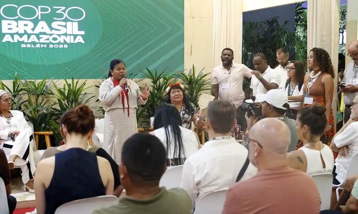 “A ministra destacou que é impossível buscar soluções para a crise climática sem a participação de todas as pessoas que defendem os territórios, preservam a biodiversidade e cuidam do planeta. Segundo ela, não se podem desenvolver respostas eficazes sem considerar essas diversas perspectivas.“.