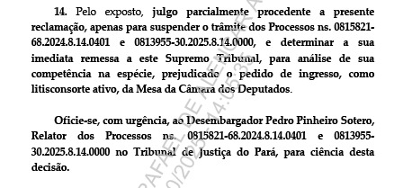 Abaixo, recorte de um dos trechos do despacho da ministra do STF.