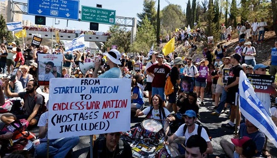 O Fórum de Reféns e Familiares dos Desaparecidos prometeu que os manifestantes iriam “fechar o país” numa greve geral, com o objetivo de trazer de volta os reféns e acabar com a guerra. Em todo o Israel, manifestantes bloquearam estradas, incendiaram pneus e entraram em confronto com a polícia. Mais de 30 manifestantes foram presos, segundo as autoridades.